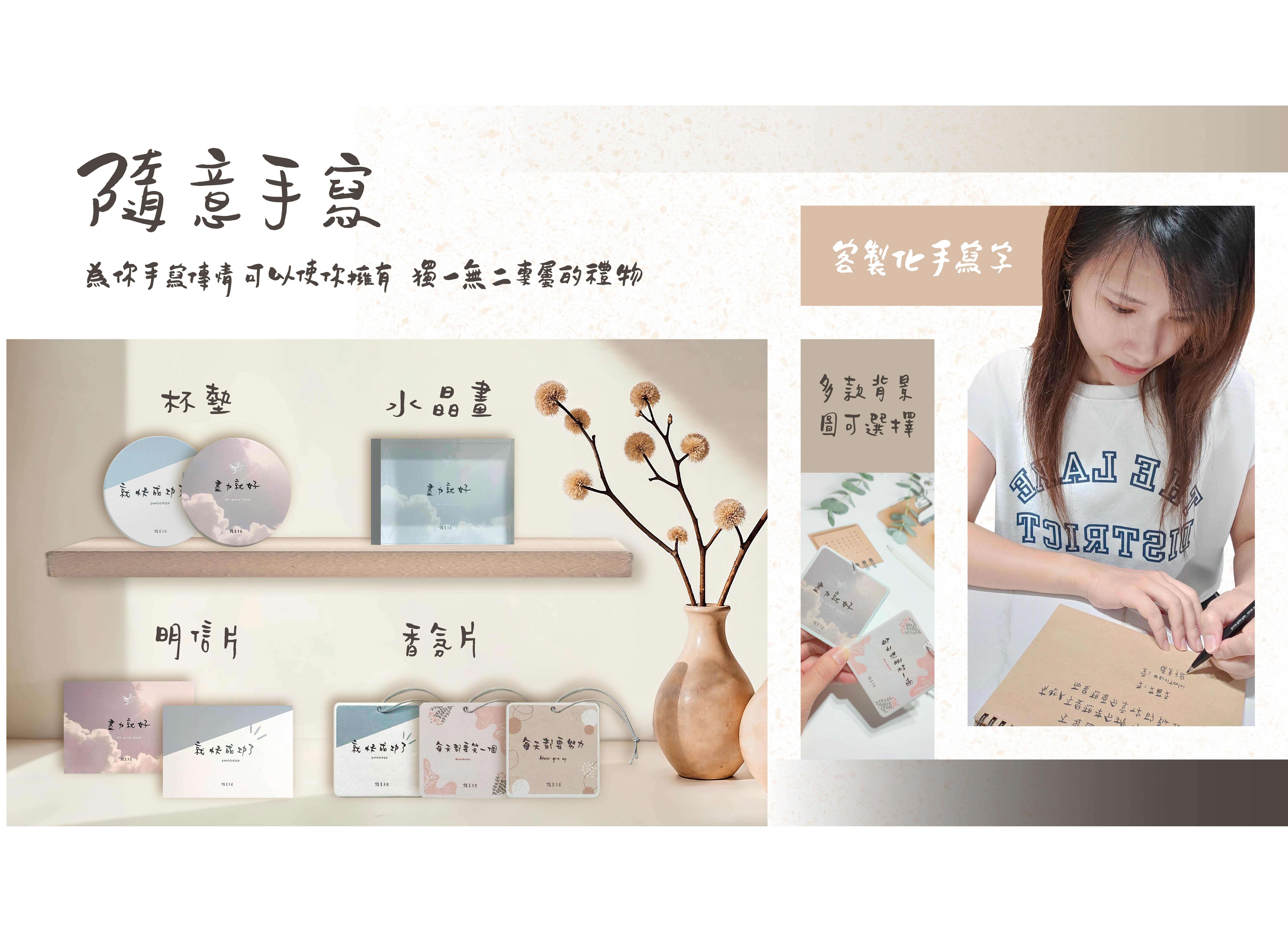 親筆寫字,不論是一筆一劃還是隨意寫寫,其實都代表著當下的心情、情緒及處境,同時也是在記錄生活,所以我是個喜歡透過手寫文字來傳遞情感